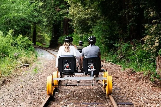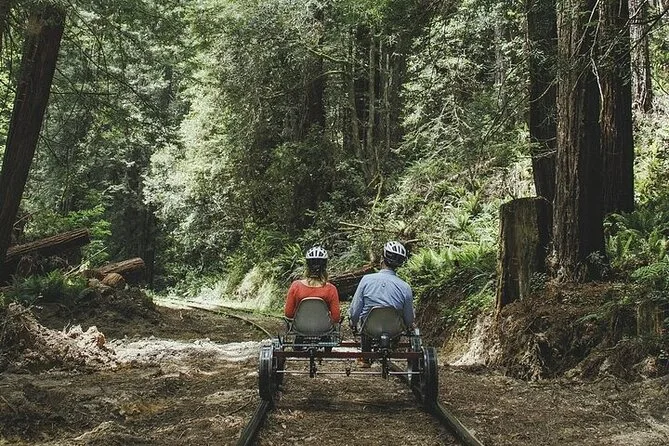 Il tuo giorno include l’uso di railbike elettriche sui binari storici vicino a Fort Bragg, acqua in bottiglia per rinfrescarti mentre pedali sotto le sequoie lungo lo stagno di Pudding Creek, più caschi (o porta il tuo) per la sicurezza durante tutto il percorso.