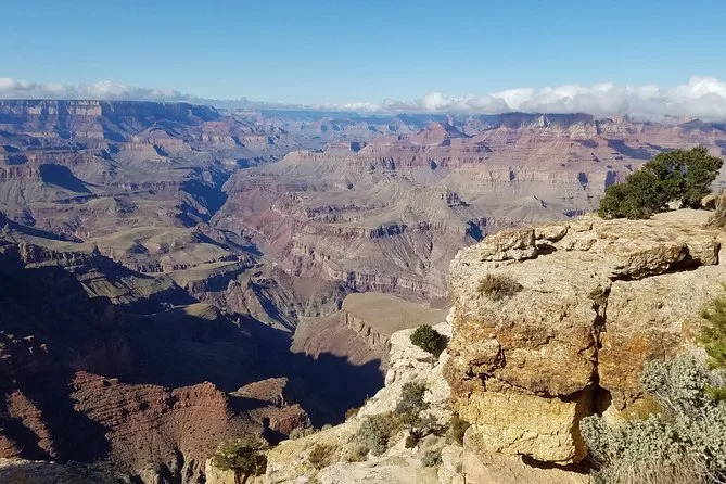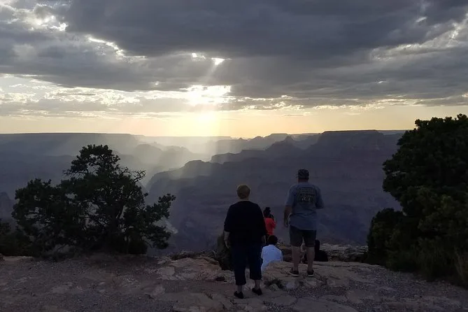 Il tuo giorno include pick-up dall’hotel a Flagstaff, trasporto narrato fino al South Rim del Grand Canyon con una guida locale esperta che condivide storie lungo il percorso, uso di binocoli per avvistare la fauna (come i Condor della California), acqua in bottiglia e snack durante le soste, materiale informativo colorato su geologia e storia, più un pranzo semplice sotto i pini prima del rientro in un veicolo climatizzato.