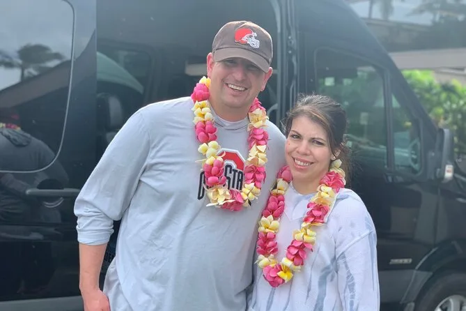 Il tuo viaggio include un transfer privato in van climatizzato con ampio spazio per i bagagli, tutte le tasse incluse, e pickup sia all’aeroporto internazionale di Honolulu che al tuo hotel a Waikiki — sempre con un autista locale amichevole che ti aspetta anche se arrivi in ritardo dal ritiro bagagli o dal check-out.