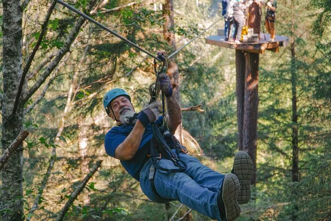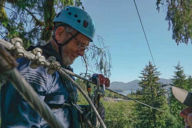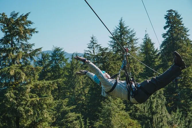 Il tuo giorno include tutta l’attrezzatura di sicurezza necessaria per il zipline nella Tongass National Forest, il trasporto in veicolo climatizzato con pick-up a Ketchikan, la guida di esperti locali in ogni piattaforma e ponte, tempo per esplorare una storica segheria e il parco dei totem, e la possibilità di gustare un caffè o tè caldo prima di tornare in città.