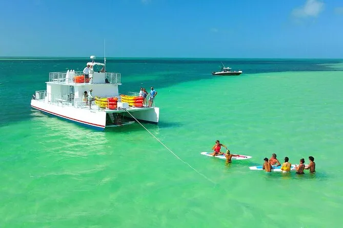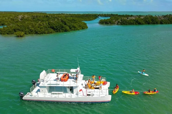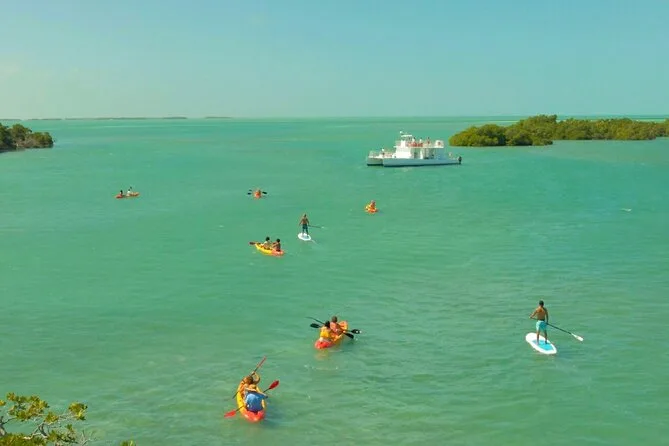 La tua giornata include un tour guidato in kayak tra le mangrovie di The Mud Keys con tutta l’attrezzatura fornita, pranzo a base di specialità locali come panini cubani e frutta fresca servito a bordo mentre navighi verso la sandbar nascosta di Jewfish Basin. Dopo il kayak, birra alla spina illimitata, vino e bibite, oltre a giochi d’acqua — galleggianti, palloni e paddleboard per esplorare o rilassarti fino al rientro a Key West nel tardo pomeriggio.