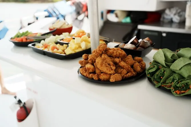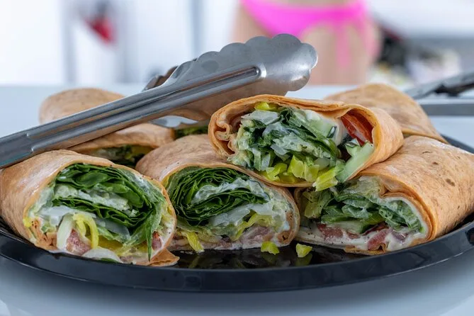 Sì, il pranzo comprende panini cubani, pollo fritto, wrap vegetariani, frutta fresca e altro.