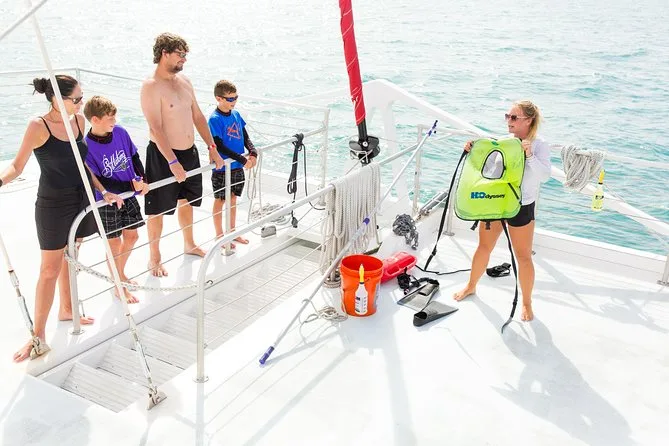 La giornata inizia con il check-in al molo prima di salire a bordo di un moderno catamarano dove ti aspetta una colazione leggera con muffin, frutta, cereali e succhi. Tutta l’attrezzatura per lo snorkeling è fornita insieme a istruzioni esperte se vuoi. Dopo aver esplorato la barriera corallina vicino a Key West potrai sciacquarti con docce d’acqua dolce e poi goderti mimosas o birra illimitata durante il rientro verso la costa.