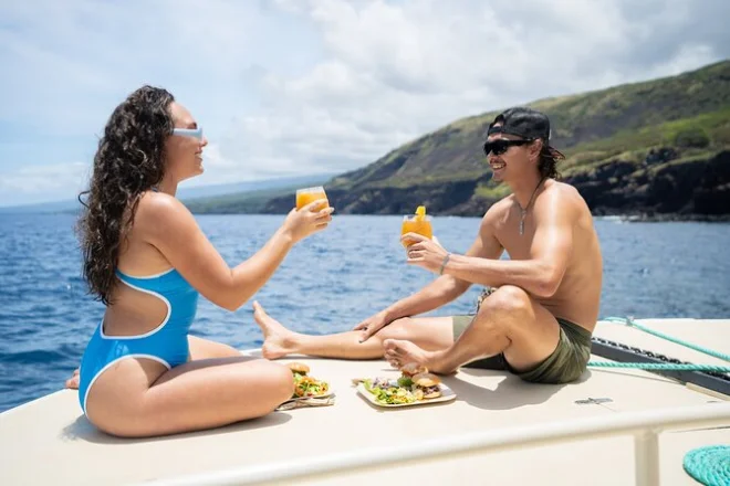 Nuoterai in acque limpide a Kealakekua Bay e scoprirai le barriere laviche selvagge lungo la costa frastagliata di Kona, guidato da esperti locali che conoscono ogni storia e angolo nascosto. Gusta un pranzo vegano fresco a bordo dopo aver avvistato pesci tropicali o magari qualche tartaruga. L’aria salmastra resta con te anche dopo esserti asciugato — questa giornata lascia il segno.