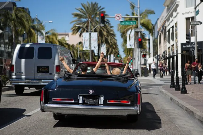 Il tour include pick-up e rientro in hotel nelle zone di Beverly Hills, Hollywood o Downtown LA; acqua in bottiglia; tutti gli spostamenti in cabrio d’epoca privata; e una guida locale simpatica che racconta storie lungo tutto il percorso.
