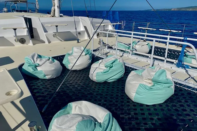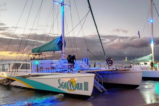 La tua serata include l’imbarco diretto sulla spiaggia di Ka’anapali Beach su un catamarano di lusso lungo 20 metri, la cena a buffet dello chef Jai servita a bordo, open bar con cocktail e birre premium per tutta la durata della crociera, musica dal vivo il mercoledì e il sabato (se sei fortunato), quattro ore di convalida parcheggio nelle vicinanze e, se è stagione di balene tra dicembre e aprile, occhi puntati al largo prima di tornare a riva poco dopo il tramonto.