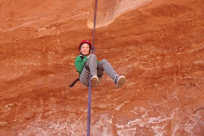Il tuo giorno include il prelievo a Moab con veicolo 4x4, tutta l’attrezzatura necessaria—imbraghi, caschi e corde—e la guida di un esperto locale autorizzato. Riceverai snack durante il percorso e acqua extra al ritorno dopo aver esplorato insieme i canyon, prima di rientrare in città.