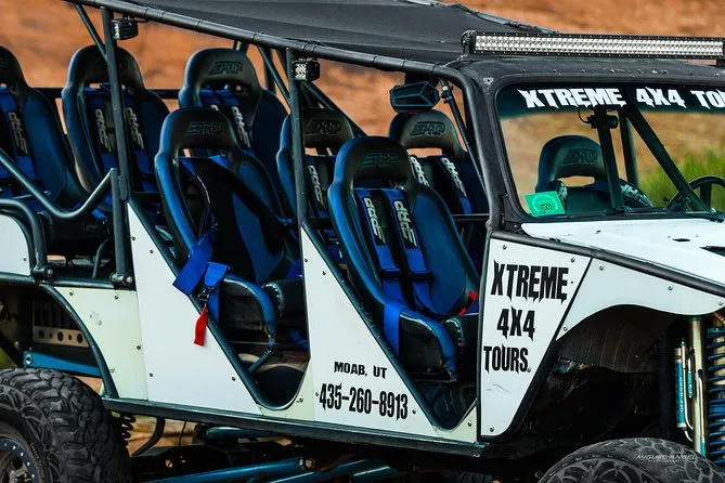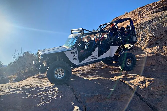 La tua avventura di mezza giornata include il pick-up direttamente a Moab (se necessario), tutta l’attrezzatura di sicurezza come caschi e cinture montata dalla guida prima di partire, acqua in bottiglia per rinfrescarti sotto il sole del deserto, snack lungo il percorso e un pilota professionista che conosce ogni curva di Hell’s Revenge a memoria.