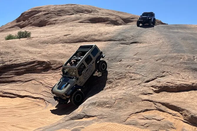 Prendi il volante di una Jeep personalizzata a Moab, seguendo la guida locale su sentieri leggendari come Hell’s Revenge e Fins N Things. Aspettati salite ripide, discese adrenaliniche, chiacchiere via radio e panorami desertici mozzafiato. Acqua in bottiglia inclusa, ma sarà l’adrenalina a tenerti su.