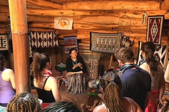 Sì, visiterai un Hogan tradizionale e assisterai a una dimostrazione di tessitura da parte di un’artigiana locale.
