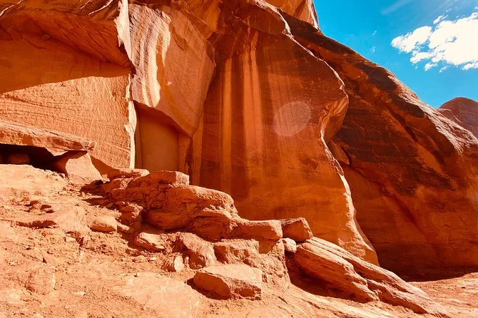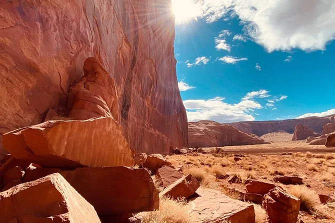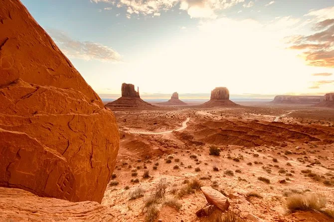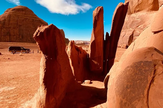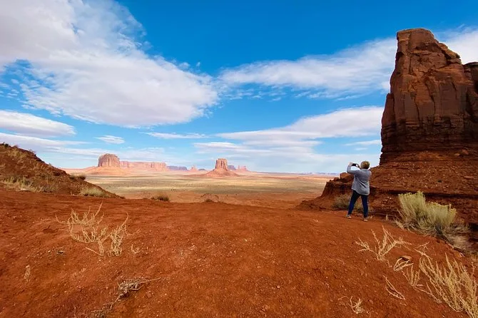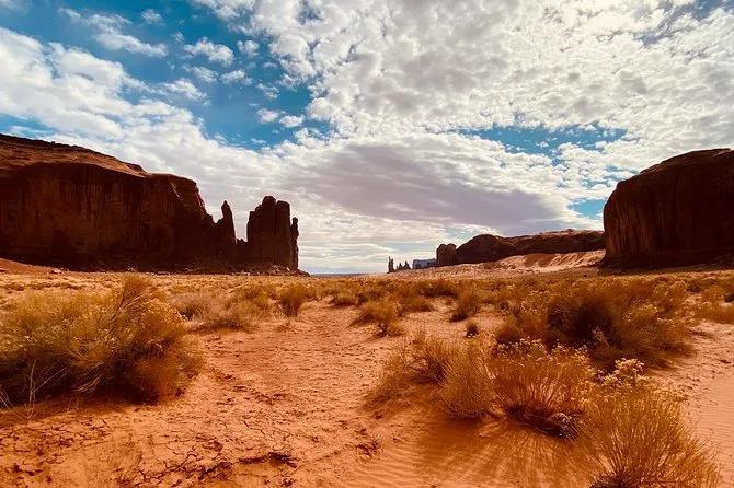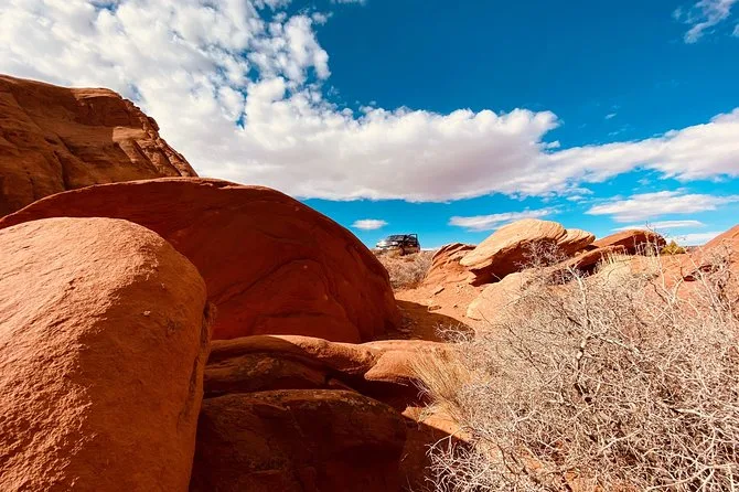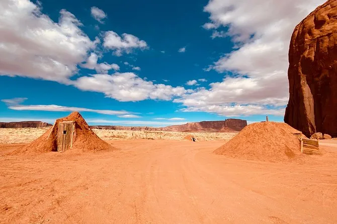 Esplora la Monument Valley in profondità con una guida Navajo certificata—luoghi che la maggior parte dei visitatori non vede mai. Guarda la tessitura dei tappeti dentro un vero Hogan, ascolta storie e canti che risuonano tra archi antichi, e cammina dove hanno cavalcato le leggende del cinema. Non è solo un paesaggio, è un’esperienza che resta nel cuore.