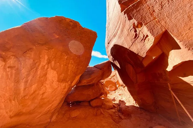 Sì, la guida può condividere canti o racconti in alcune tappe come l’arco Big Hogan.