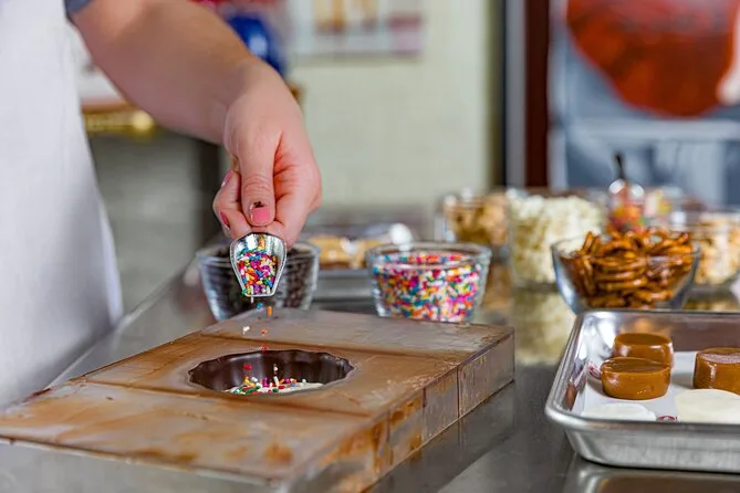 La tua giornata include un’ora di laboratorio pratico nel negozio principale Goo Goo di Nashville con un istruttore che racconta la storia locale dei dolci; assaggerai diversi tipi di cioccolato incluso il cluster originale, creerai il tuo Premium Goo Goo con tanti ingredienti, conserverai il grembiule ricordo — tutte le tasse e i costi sono inclusi.