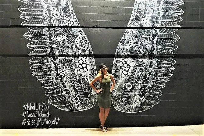 La prima cosa che ricordo è stata un’esplosione di colori: enormi ali dipinte su un muro di mattoni lungo l’11th Avenue, illuminate dal sole nel modo perfetto. La nostra guida, Marcus, sorrideva mentre mi passava il telefono per scattare una foto (“Devi fare la posa!”). Nell’aria si sentiva un leggero profumo di barbecue provenire da qualche parte, mentre da un finestrino di un camion che passava usciva una canzone country. Nashville corre veloce ma allo stesso tempo ha un’aria rilassata, capisci cosa intendo?
