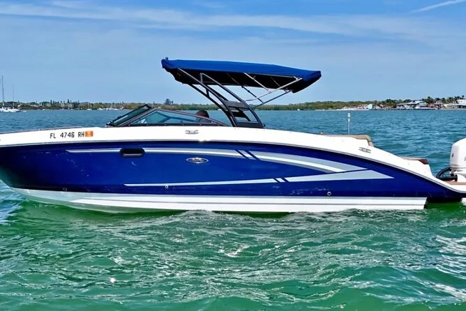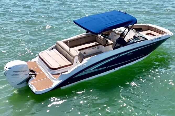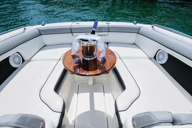 Salpa da Bayside Marketplace per un noleggio barca privato a Miami con amici o famiglia, champagne incluso. Naviga davanti a Star Island e Fisher Island mentre il capitano racconta storie locali. Goditi musica sul ponte, brezze fresche e viste mozzafiato dello skyline prima di tornare a riva più leggeri e felici.