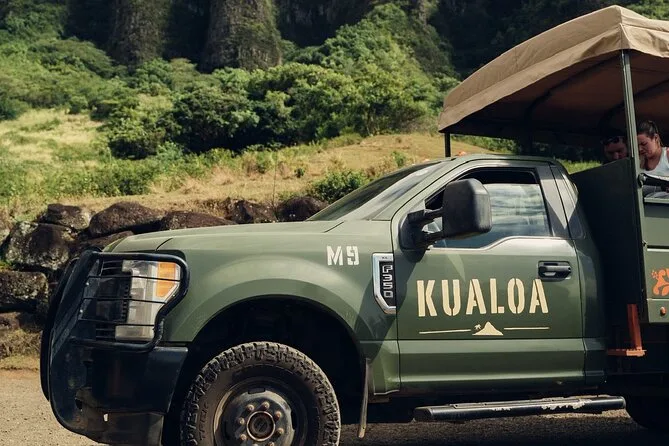 La tua giornata include un giro guidato off-road a Kualoa Ranch a bordo di un Pinzgauer svizzero, con soste a punti panoramici e al Moli’i Pond; guide locali amichevoli ti racconteranno storie lungo il percorso. Devi raggiungere il ranch in autonomia, ma sono disponibili armadietti per lasciare i tuoi effetti personali prima di lanciarti sui sentieri fangosi.