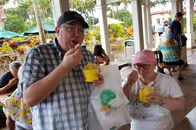 Il tuo giorno include pickup e drop-off al tuo hotel di Waikiki, acqua in bottiglia per tutto il viaggio, tutte le tasse e commissioni incluse dall’operatore, oltre a degustazioni gratuite di macadamia e caffè prima del pranzo. Una guida-autista professionista condivide storie ad ogni tappa prima di riportarti comodamente in hotel la sera.