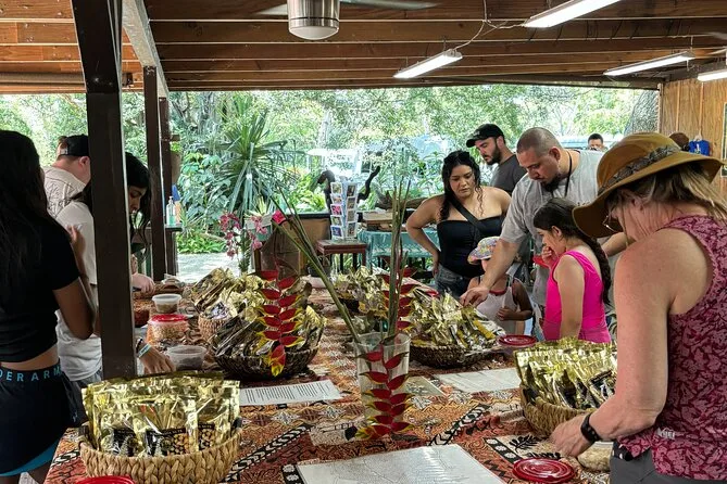 Non pensavo che il pranzo mi sarebbe piaciuto così tanto, ma davvero? I gamberi all’aglio in questa fattoria sotto le montagne Koʻolau sono qualcosa che ancora mi torna in mente. Keoni ci ha fatto passare accanto ai campi di taro spiegandoci come queste terre sostengono tante famiglie—c’era qualcosa di speciale nel sentirlo parlare mentre si sentiva l’odore della terra e dell’aglio che friggeva insieme. Poi ci siamo fermati a un banchetto di frutta dove ho provato l’acqua di cocco fresca direttamente dalla noce—un po’ disordinato ma ne è valsa la pena.
