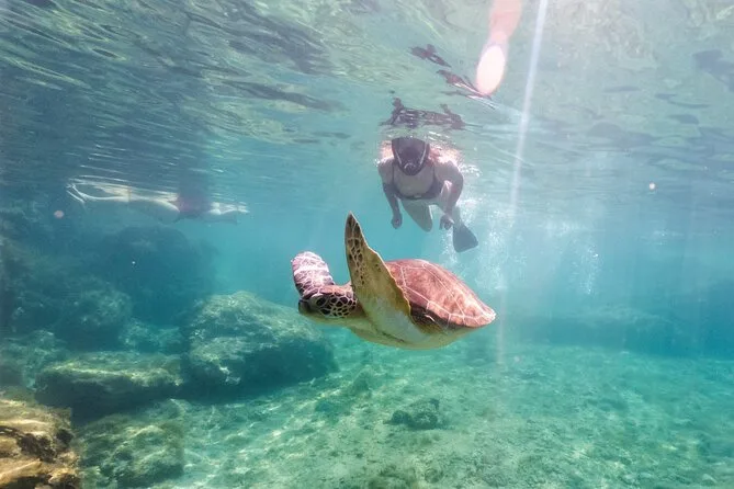 Il tuo giorno include trasporto andata e ritorno in minibus climatizzato con pick-up e drop-off in hotel selezionati di Waikiki; guida esperta locale; uso dell’attrezzatura per snorkeling a Turtle Beach; e tante soste per foto e snack come noci di macadamia o gelato all’ananas (il pranzo è extra e si paga in contanti). Porta solo l’essenziale: penseremo a tutto noi dall’inizio alla fine.