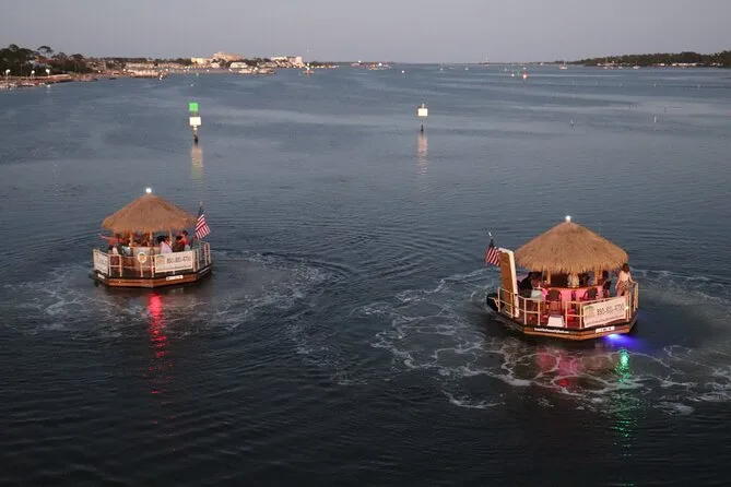 Devo ammettere che ho prenotato la crociera Cruisin’ Tikis al tramonto a Panama City Beach più per curiosità (e forse per vedere se quei bar galleggianti erano davvero così divertenti come sembrano da terra). E invece è stato proprio rilassante come speravo. Siamo saliti su questa piccola barca tiki rotonda — tetto di paglia, sgabelli da bar, tutto il necessario — e il nostro capitano, Mike, ha sorriso e ha detto “Allora, avete le bevande nel cooler?” Da subito l’atmosfera era quella giusta. Io avevo portato un rosé economico e una busta di patatine, niente di speciale. L’aria profumava di mare ma non pungente, più di crema solare e qualche seltzer alla frutta. Si sentiva la musica delle altre barche che si mescolava alla nostra mentre ci allontanavamo dal molo.