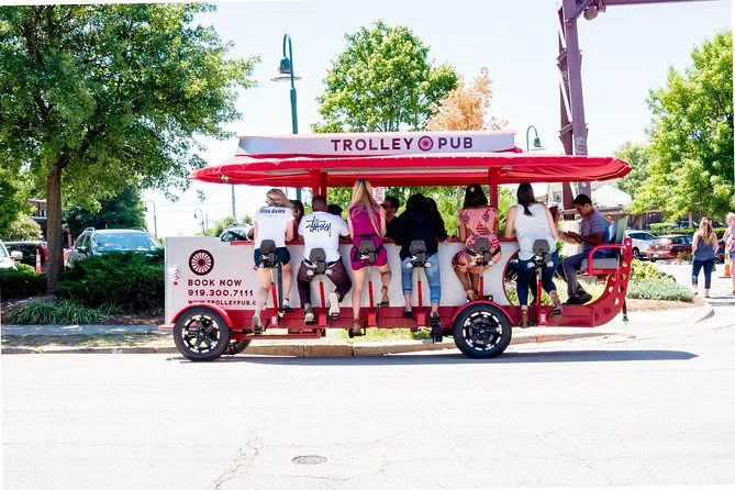 Il tuo giorno include due ore a bordo del Trolley Pub nel centro di Raleigh con una guida-autista, una birra gratis a persona per iniziare, oltre a ghiaccio e un cooler per mantenere fresche altre bevande lungo il percorso, prima di tornare al punto di partenza.