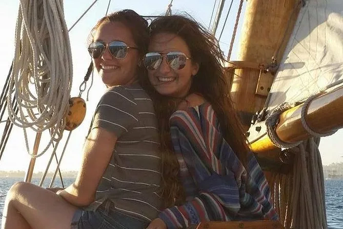 «Se vuoi, puoi prendere il timone», disse Captain Phil con un sorriso sotto il suo cappellino consumato. Esitai — guidare uno yacht d’epoca non è proprio una cosa che faccio tutti i giorni. Liberty scricchiolava dolcemente mentre lasciavamo il molo vicino al centro di San Diego, il legno caldo sotto la mia mano. Le vele catturavano una brezza che profumava leggermente di salsedine e un po’ di crema solare da qualche parte vicino. Eravamo solo in cinque, più Phil, e sembrava più di un’uscita in famiglia che di una gita turistica normale nella baia di San Diego.