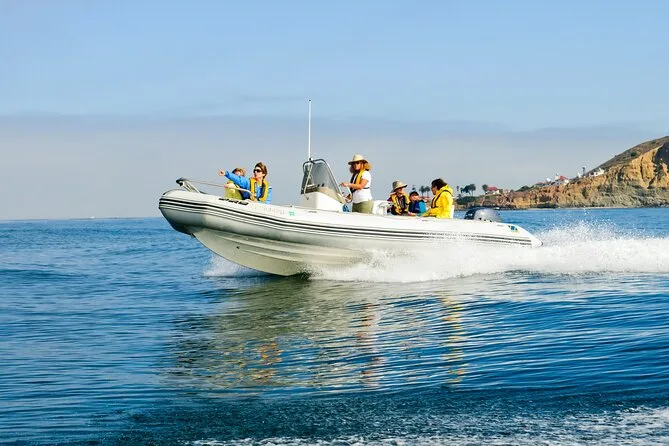 Il tuo giorno include l’imbarco su un Zodiac da 22 piedi in stile spedizione a Mission Bay, guidato da un capitano esperto con licenza USCG che ti porterà nei migliori punti per avvistare fauna marina. Riceverai antivento impermeabili e giubbotti di salvataggio approvati prima di partire per vedere balene, delfini, leoni marini, uccelli marini e altro lungo la costa di San Diego—tutto in piccolo gruppo per goderti meglio il panorama e conversazioni autentiche.