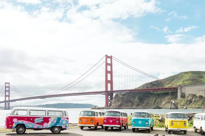 Il tour include acqua in bottiglia e snack a bordo di un VW bus vintage (fino a 7 posti), accesso a luoghi iconici di San Francisco come Painted Ladies e Golden Gate Bridge, dove i bus più grandi non possono arrivare, più racconti e consigli da una guida locale esperta, tutto in un piccolo gruppo con partenza da un punto d’incontro facile da raggiungere in centro.