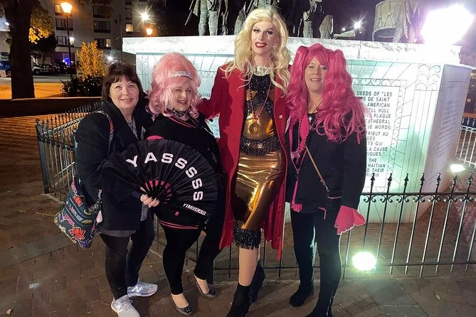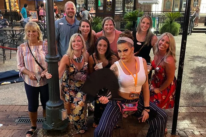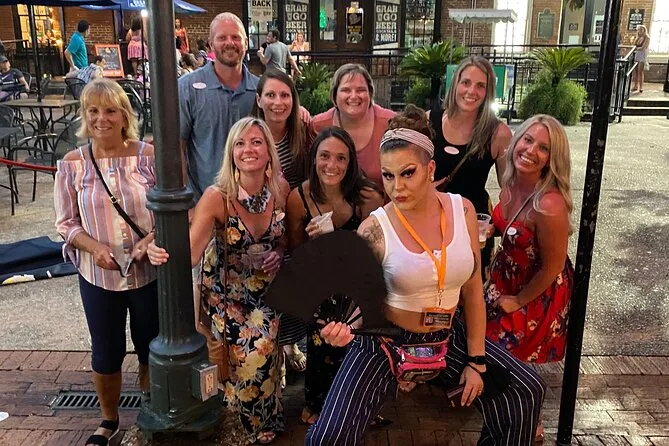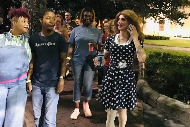 La tua serata include l’ingresso guidato a più pub animati nel Historic District di Savannah, con drag queen locali che rendono tutto divertente con storie e cori, per finire a ballare al Tree House bar—tutto facilmente raggiungibile con i mezzi pubblici e in spazi accessibili.
