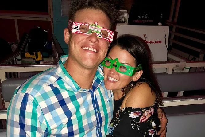 La tua serata include l’imbarco al molo di Vilano Beach, comodi sedili imbottiti sulla barca Pellicano di Red Boat, coperte calde per la brezza fresca della baia, acqua in bottiglia se serve, oltre a commenti dal vivo e una guida fotografo professionista per tutto il percorso nel centro di St Augustine illuminato per Nights of Lights.