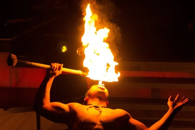 Lo spettacolo è partito subito — meno di cinque minuti e già si vedevano gonne hula che ondeggiavano, vecchie canzoni di Elvis e musicisti che sembravano fare quel mestiere da una vita (in senso positivo). La parola chiave qui è “Rock-A-Hula show” ma, a dire il vero, sembrava più un mix esplosivo della storia hawaiana che un semplice spettacolo. Quando sono usciti i ballerini con i coltelli infuocati, tutti hanno trattenuto il respiro insieme — si sentiva il calore anche da dove eravamo seduti, e non eravamo nemmeno vicinissimi. C’è stato quel momento in cui ho pensato che qualcuno potesse far cadere una torcia (ma non è successo), e questo ha reso tutto ancora più vero.