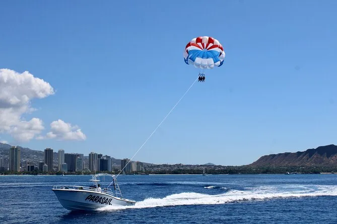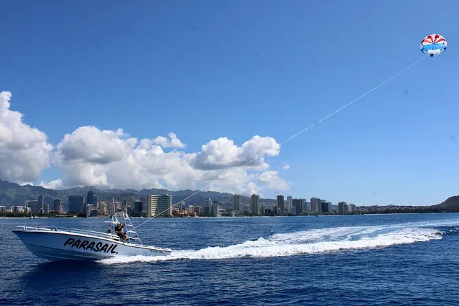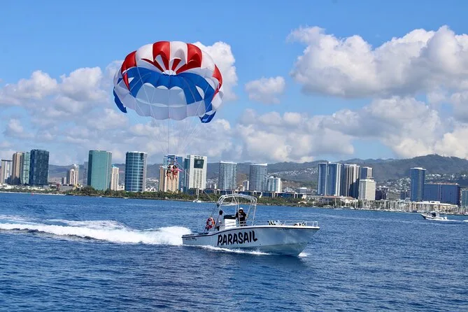 L’avventura include tutta l’attrezzatura di sicurezza—imbraghi e giubbotti salvagente—e istruzioni chiare da guide locali prima del decollo direttamente da una barca condivisa. Godrai di circa un’ora di navigazione lungo la costa sud di Oahu con viste panoramiche su Waikiki Beach e il cratere di Diamond Head durante il parasailing.