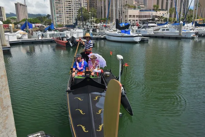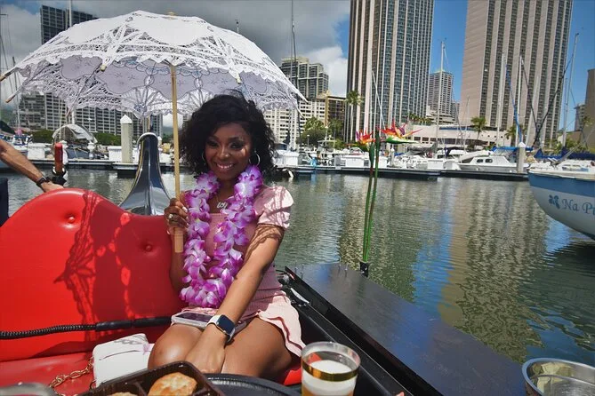 Il tuo giorno include un’accoglienza con lei all’arrivo al porto di Ala Wai, l’uso di ombrello e coperta durante la navigazione lungo il canale e il porto di Waikiki su una gondola in stile veneziano (fino a quattro ospiti per barca), deliziosi dolci e bevande serviti a bordo, più voucher per il bus turistico hop-on hop-off valido tutto il giorno per continuare a scoprire Waikiki a tuo ritmo.
