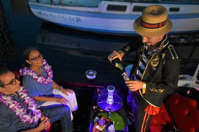 Scivola lungo i canali di Waikiki su una gondola in stile veneziano con dolci e drink, accolto da una lei e racconti su Diamond Head. Ammira le luci della città che si accendono passando vicino a Magic Island, poi continua a esplorare Waikiki con il pass per il bus turistico incluso — un’esperienza che ti resterà nel cuore anche dopo aver lasciato Oahu.