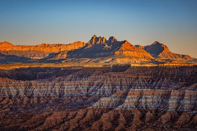 Il tuo giorno panoramico include un volo in elicottero di 100 miglia intorno a Zion e Canaan Wilderness con tutte le tasse di atterraggio e strutture incluse; sono disponibili upgrade per atterraggi opzionali su butte con tempo per escursioni o picnic prima del ritorno insieme alla base.