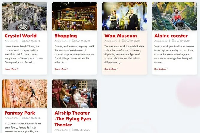 Il tuo giorno include il pick-up in hotel a Hoi An o Da Nang, acqua in bottiglia durante il tragitto, biglietti andata e ritorno per la funivia più lunga del Sud-est asiatico (valore 950.000 VND), una guida in inglese simpatica e disponibile, ingresso a tutte le attrazioni principali come il Golden Bridge e il French Village, più un ricco pranzo a buffet prima di rientrare nel pomeriggio.