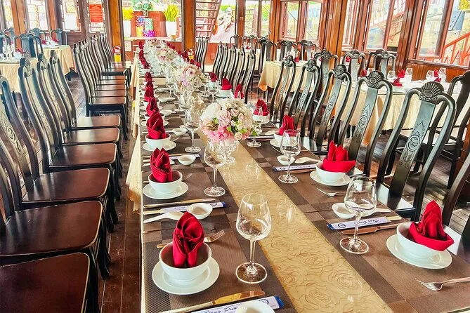 Scivola lungo lo skyline illuminato di Saigon con una cena in crociera sul fiume, scegliendo tra buffet o menù fisso (da prenotare prima). Goditi musica dal vivo, tavoli riservati e il pickup dal tuo hotel nei District 1 o 3. Guarda le luci della città riflettersi sull’acqua mentre condividi storie con la guida — non è solo cena, è Saigon che si svela intorno a te.