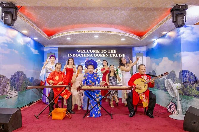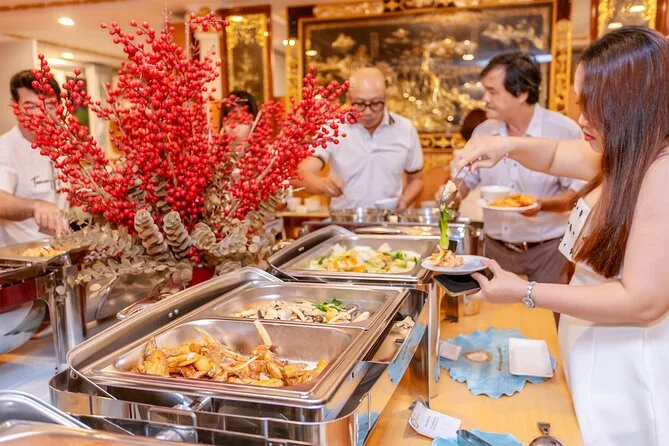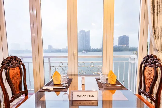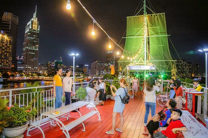 La tua serata include il pickup e il rientro in hotel nei District 1 o 3 con auto o minibus, la cena a buffet o menù fisso scelta in anticipo servita a un tavolo riservato durante una crociera di 60-120 minuti sul fiume Sai Gon, esibizioni di musica dal vivo a seconda della disponibilità, tutte le tasse incluse, e l’assistenza di una guida locale vietnamita parlante inglese prima del rientro nel centro di Ho Chi Minh City.