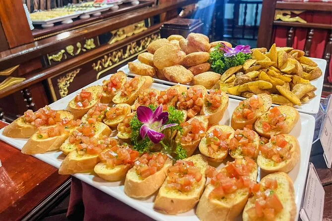 La prima cosa che ho notato è stato il modo in cui le luci della città si riflettevano sull’acqua — non solo un riflesso, ma quasi come se Saigon ci stesse facendo l’occhiolino. La nostra guida, Minh, ci ha accolto direttamente in hotel nel District 1 (una comodità che ha reso tutto più semplice), e abbiamo attraversato il traffico serale fino al molo di Bach Dang. C’è quel momento magico quando sali sulla barca e il rumore degli scooter svanisce alle tue spalle — all’improvviso tutto si fa silenzioso, solo musica soffusa e il dolce sciabordio dell’acqua contro lo scafo.