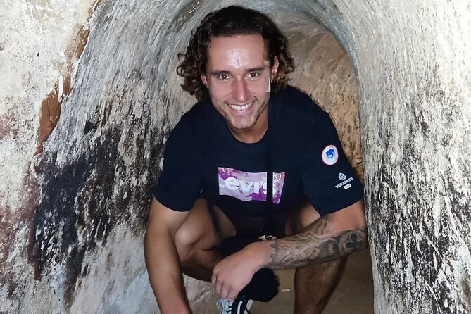 Striscerai nei veri Cu Chi Tunnels fuori Ho Chi Minh con una guida locale che condivide storie personali e storia. Vedrai da vicino reperti di guerra, sentirai la consistenza delle pareti di argilla rossa e vivrai l’esperienza di chi sopravviveva sottoterra — con pick-up comodo e acqua inclusa.
