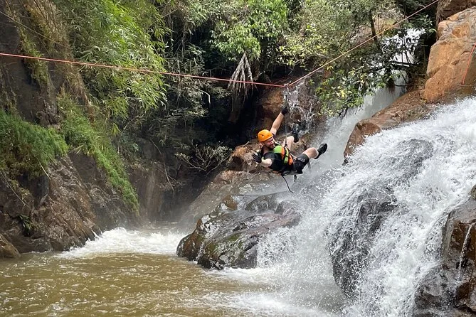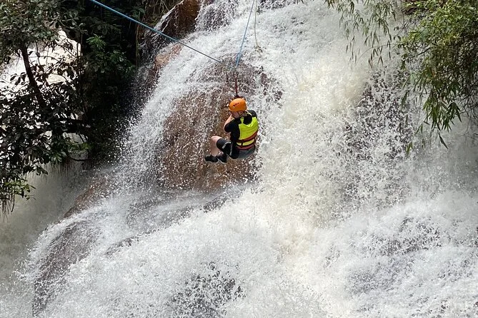 Il tuo giorno include il prelievo e il ritorno in hotel a Da Lat, tutti i biglietti d’ingresso alla cascata Datanla, guide professionali che garantiscono la sicurezza in ogni attività, uso completo di mute e attrezzatura da arrampicata di qualità (Petzl/Beal/Black Diamond), snack e acqua purificata durante il percorso, più un pranzo picnic vietnamita con pane fresco e frutta di stagione gustato proprio accanto alle cascate prima di tornare insieme in città.