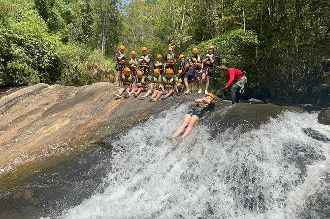 Inizia il canyoning a Da Lat con guide esperte che ti fanno ridere invece di urlare solo ordini. Calati dalle scogliere, vola sulle zipline sopra i fiumi, scivola sulle cascate e poi gusta un pranzo picnic proprio lì — pane fresco, frutta e aria di montagna ovunque. Se cerchi avventura ma anche quei momenti di stupore silenzioso (e magari calzini bagnati), questa è la giornata giusta per te.