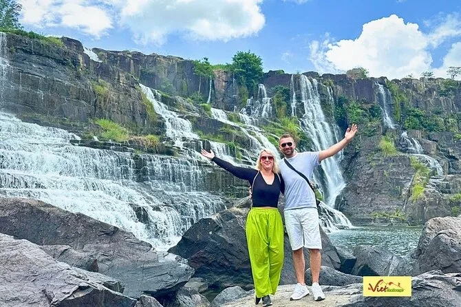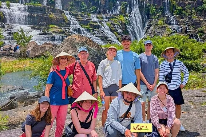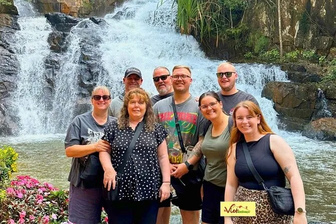 Il tuo giorno include acqua in bottiglia, pickup e ritorno in hotel con veicolo climatizzato e guida in inglese che ti accompagnerà tra le cascate Datanla, Pongour e Elephant (vista dalla pagoda Linh An), oltre a soste in laboratori di seta artigianale, degustazioni in fattoria di grilli, dimostrazione di intreccio di bambù e tempo alla piantagione di caffè Me Linh prima del rientro in centro a Da Lat.