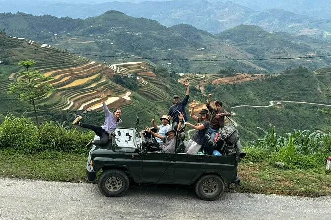Viaggerai in jeep aperta lungo le strade di montagna di Ha Giang con una guida locale, farai tappa in villaggi come Du Gia per pasti fatti in casa e camere private, camminerai sul passo Ma Pi Leng sopra il fiume Nho Que e ti rinfrescherai in una cascata nascosta. Non sempre è comodo, ma è autentico — e porterai con te panorami indimenticabili.