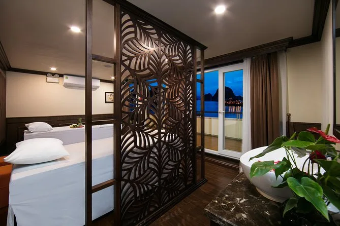 Pedala in kayak tra grotte silenziose di Halong e Lan Ha Bay, ammira il tramonto dal tuo balcone privato, assapora piatti vietnamiti freschi preparati a bordo e impara a fare gli involtini primavera con la guida locale. Svegliati con viste nebbiose su acque smeraldo: non è solo turismo, è immergersi in un ritmo di pace.