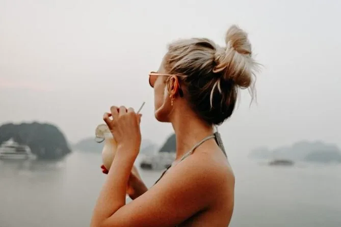 Quel pomeriggio abbiamo fatto kayak vicino alle Grotte Light e Dark. L’acqua era così limpida che si vedevano piccoli pesci guizzare sotto di noi. Le braccia si sono stancate prima di quanto volessi ammettere, ma nessuno sembrava farci caso — nemmeno quando per poco non ho urtato un altro kayak (scusate ancora a quella coppia francese). Tornati sul ponte, c’è stata una lezione di involtini primavera con la chef Li. Ha riso quando ho provato a dire “nem rán” in vietnamita — probabilmente l’ho storpiato — ma mi ha comunque mostrato come arrotolarli bene. Il tramonto non è stato rumoroso o spettacolare; è arrivato piano piano mentre sorseggiavamo qualcosa di dolce durante l’aperitivo.