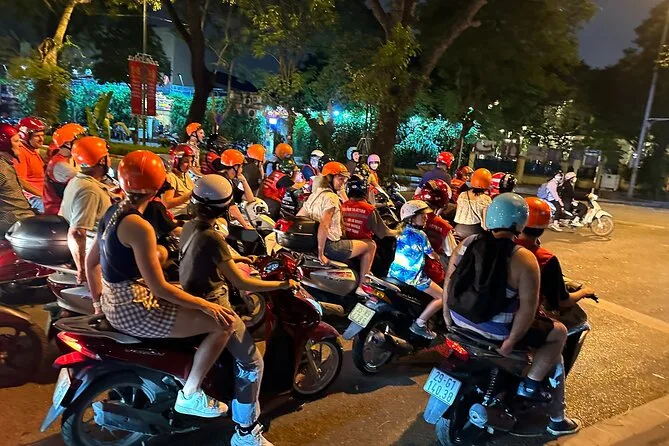 La serata include pickup in hotel o incontro all’Opera House di Hanoi, tutti i tragitti su Vespe d’epoca guidate principalmente da donne, cena con piatti tipici vietnamiti in locali tradizionali (compresa una grigliata di pesce), e la tappa finale in un caffè storico per il caffè con uovo prima del ritorno in città.