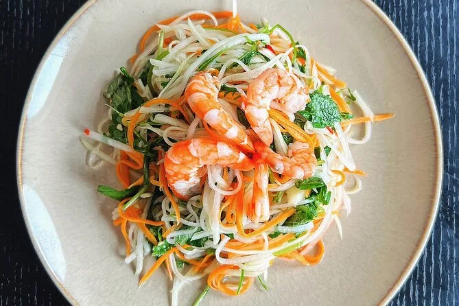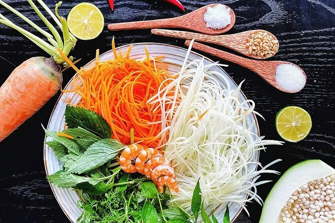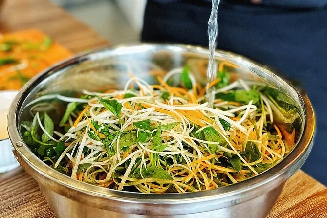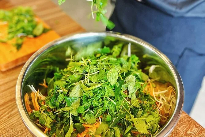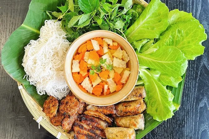 Non mi aspettavo che il mercato fresco profumasse così tanto di erbe—citronella e qualcosa di più pungente che non riuscivo a riconoscere. La nostra guida (Minh? Spero di scriverlo bene) mi ha passato un mazzo di menta e ha sorriso quando l’ho annusata come una turista. Il mercato era rumoroso, ma in modo piacevole—gente che urlava i prezzi e rideva alle battute degli altri. Abbiamo preso carne di maiale e verdure per la lezione di Bun Cha, e Minh ci ha spiegato quali verdure si abbinano meglio alla carne alla griglia. Ho cercato di ricordare i nomi ma, onestamente, ne ho dimenticati la metà appena siamo usciti.