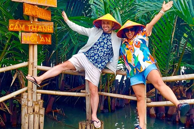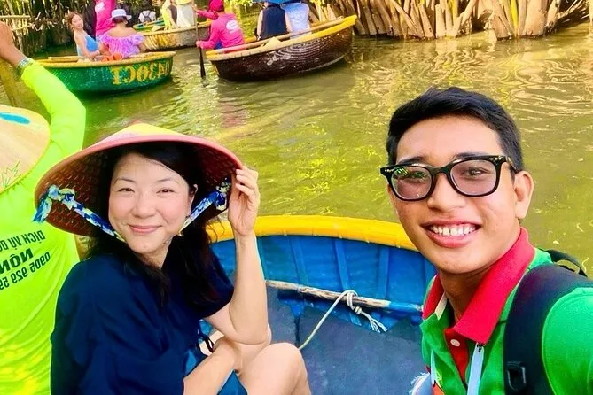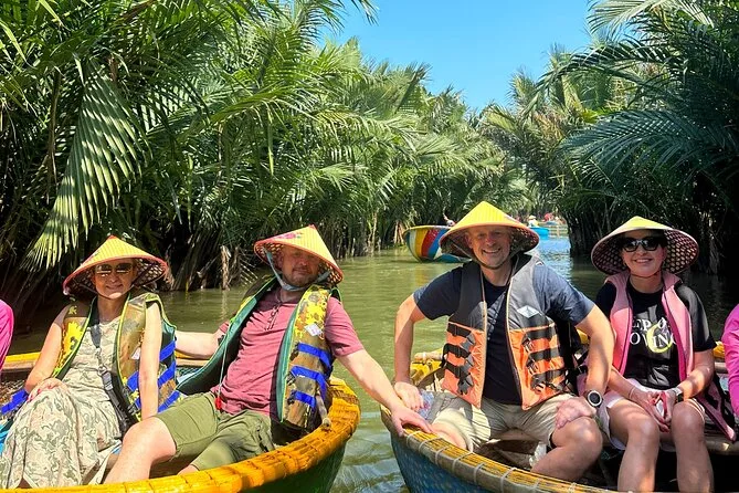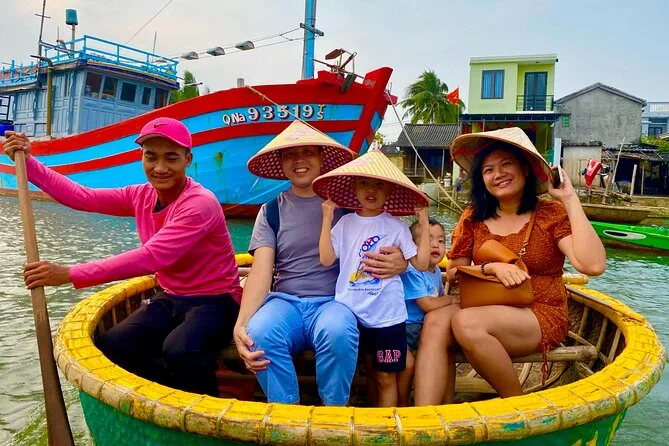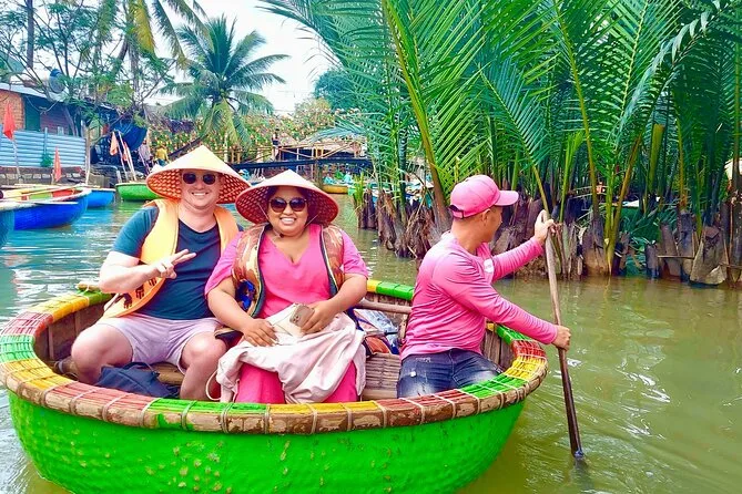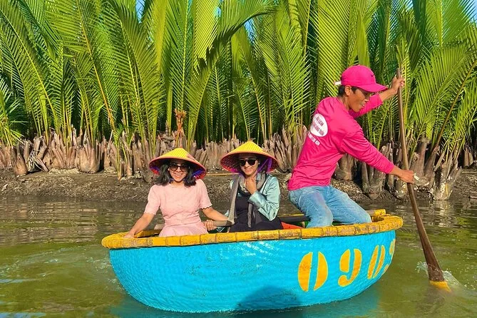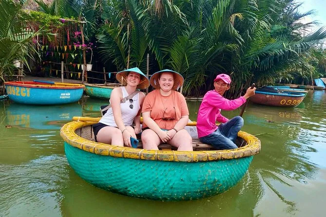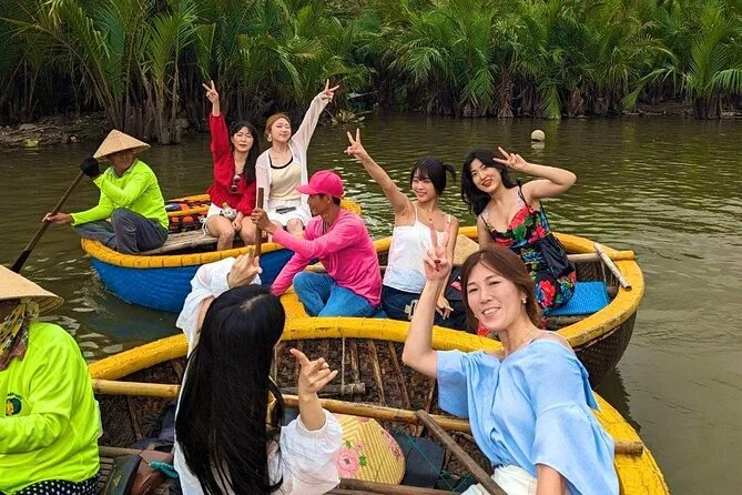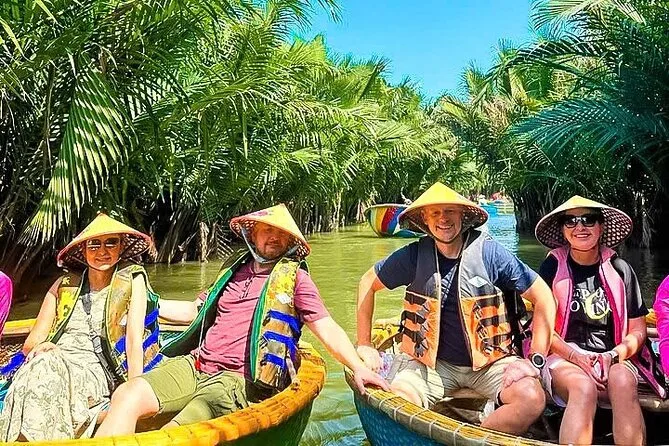 Il tuo giorno include pick-up e drop-off andata e ritorno in hotel nel centro di Da Nang, tutti i biglietti per attrazioni come Phung Hung Ancient House e il Ponte Giapponese, un giro guidato in basket boat con attività di pesca pratiche nella foresta di cocco di Bay Mau, acqua in bottiglia, una guida esperta in inglese che condivide storie per tutto il percorso, più una cena con specialità di Hoi An prima del rientro in hotel la sera.