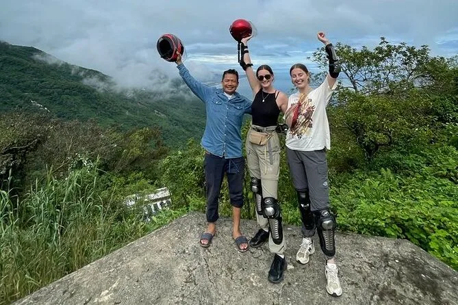 Il tuo giorno include la scelta tra moto o scooter (con guida in inglese se vuoi), tutta l’attrezzatura di sicurezza e antipioggia necessaria, acqua fresca in bottiglia lungo il percorso, più il trasferimento separato dei bagagli in auto, così puoi viaggiare leggero da Hue a Hoi An senza pensieri.
